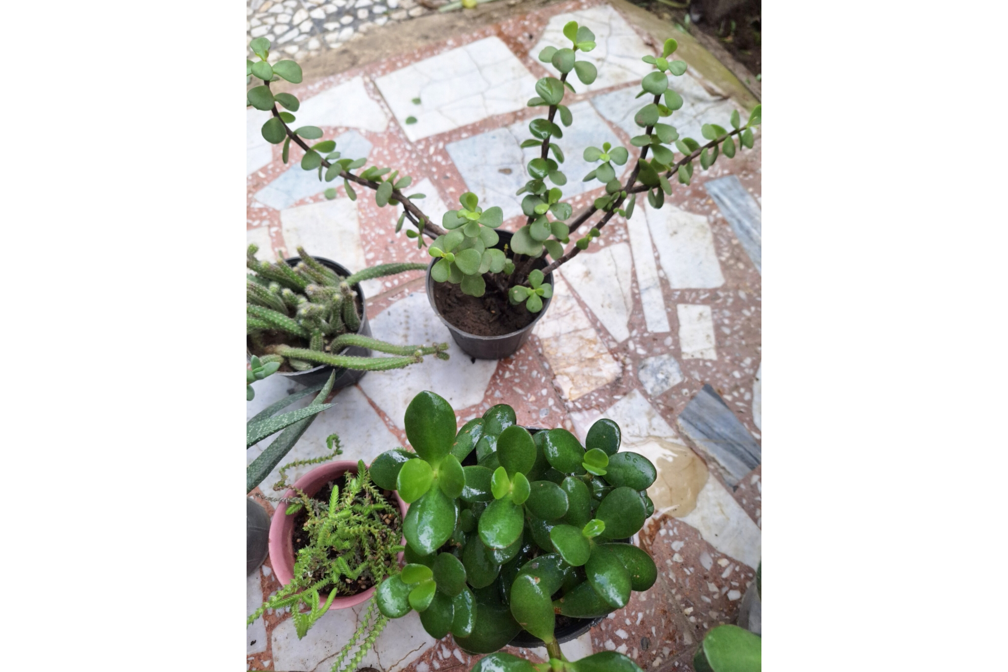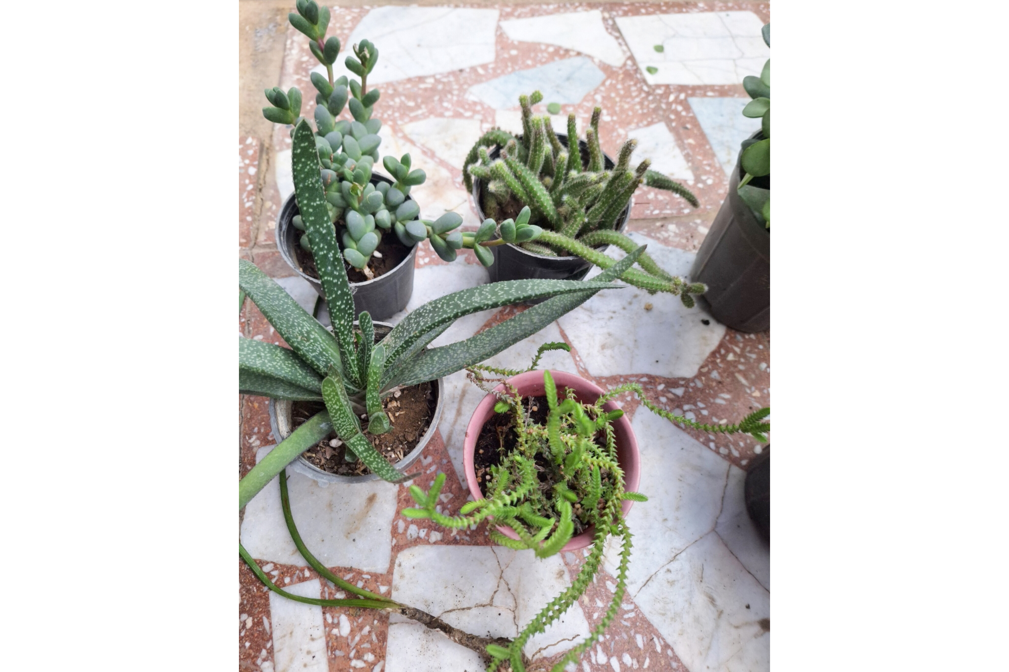 این پک شامل شش عدد کاکتوس و ساکولنت به اضافه یک عدد پیاز بالغ سوسن باران صورتی می باشد گاستریا خالدار، کاکتوس دم موشی گل نارنجی، کراسولا خرفه و گیاه یشم، بند کفشی ، ساکولنت دکمه ای