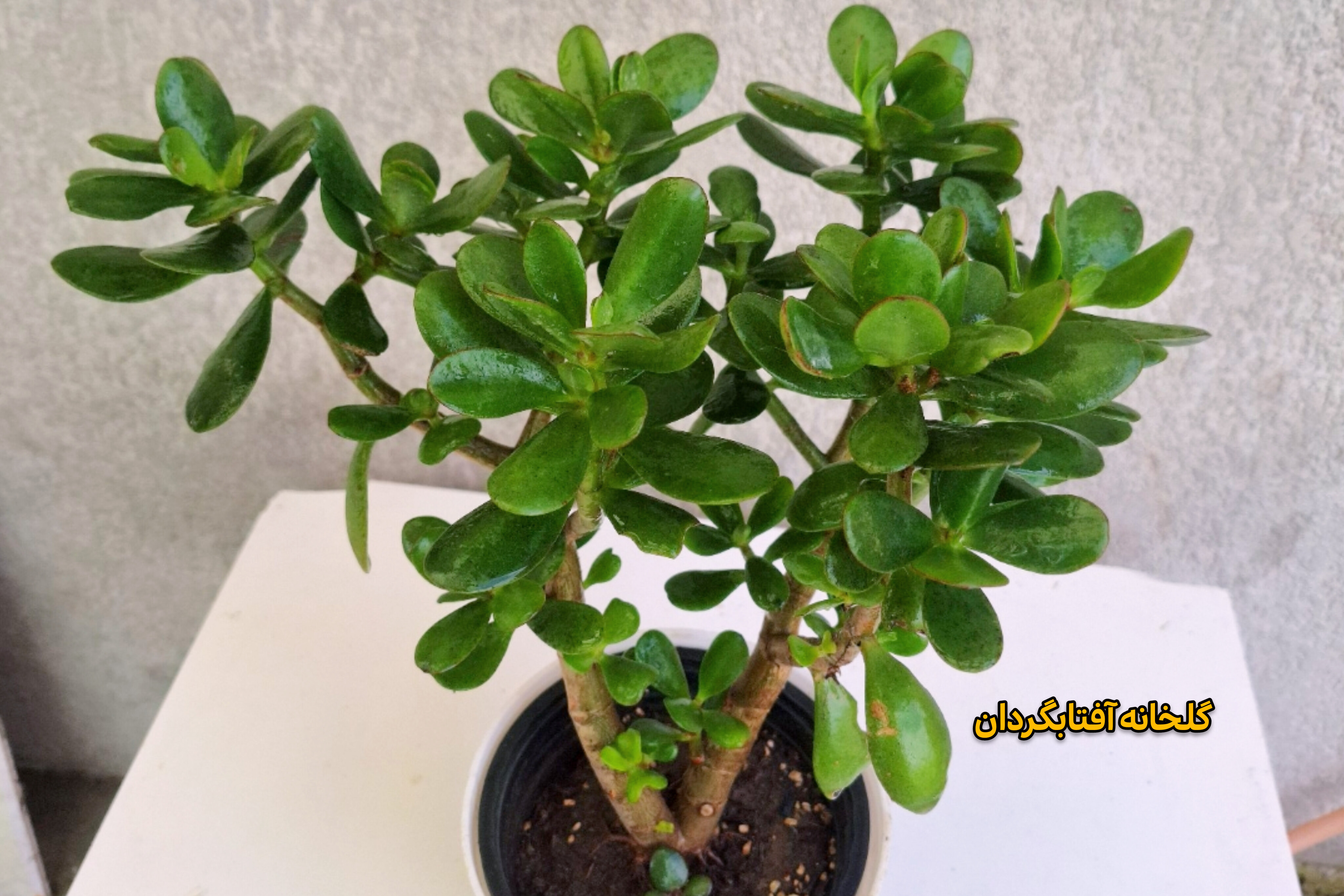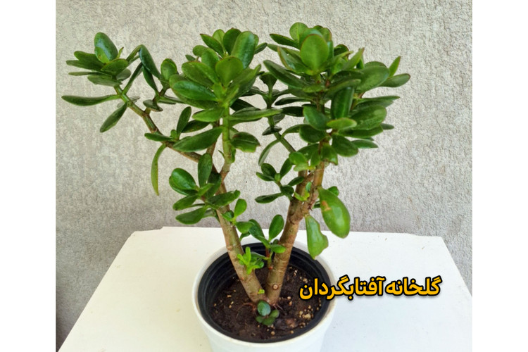 این گیاه همیشه سبز دارای برگهای گوشتی براق بوده و طی چند سال تنه ای قوی پیدا میکنه وتبدیل به درختچه ای زیبا میشه