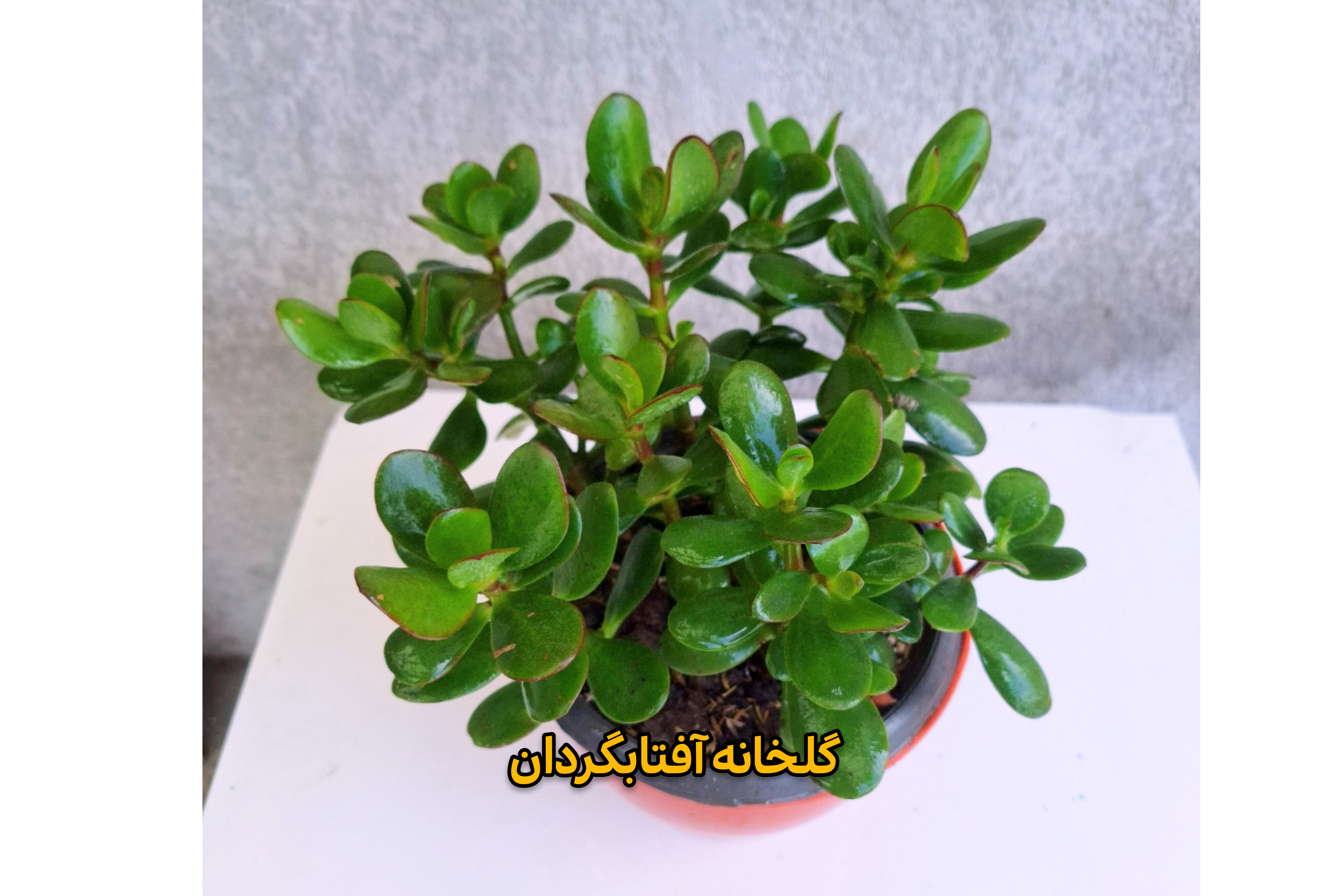 این گیاه همیشه سبز دارای برگهای گوشتی براق بوده و طی چند سال تنه ای قوی پیدا میکنه وتبدیل به درختچه ای زیبا میشه