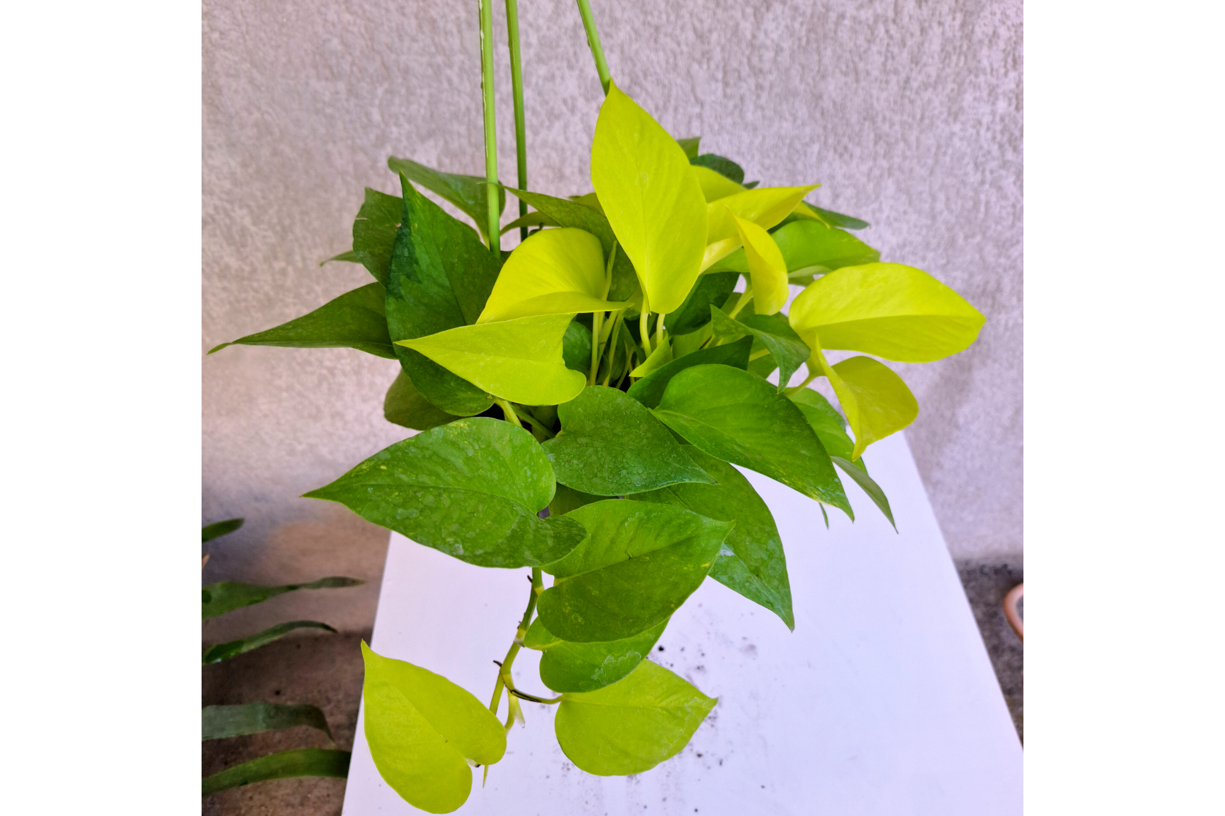 پتوس نئون گلدان 14 پلاستیکی پر بوته آویز دار